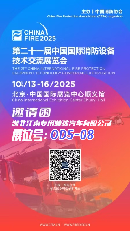 2025年10月13號-16號第二十一屆中國國際消防設備技術交流展覽會,展位號0D5-08,歡迎大家金秋十月聚北京,消防科技耀未來!誠邀您共鑒國際消防新趨勢!